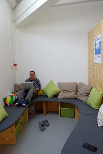 - Un meilleur outil de travail – des murs pour peindre, des tables ou des canapés pour travailler, une salle pour se réunir ou animer un cours, un local à machines pour bricoler, des imprimantes pour imprimer, des aménagements pour les expositions –