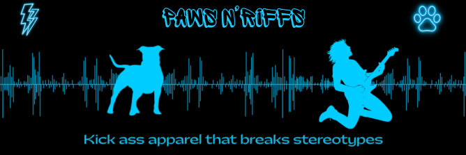 She came up with the idea of creating Paws N’ Riffs: a brand to tell the world that neither tattooed metalheads (like her) nor big, muscular dogs should be judged on their looks, nor ANYONE else for that matter.