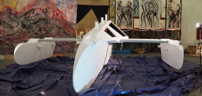 - Letzter Bauabschnitt 2015: Herstellung der Flügelsegel und deren Mechanik, Plexiglasfenster, Ausrüstung, Pedalantrieb