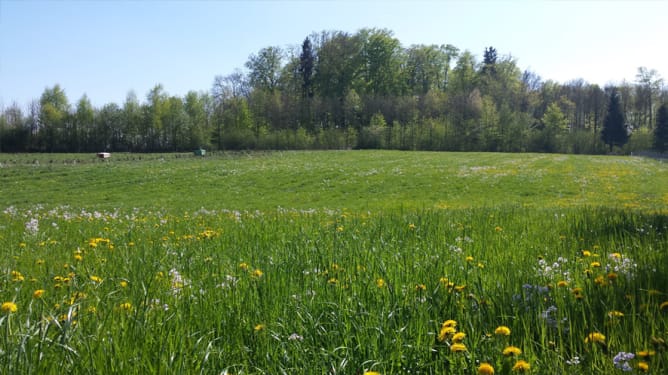 Wir wollen dieses Prinzip auf einem Teilstück der ersten Fläche testen, mit Sonnenblumen (zur 1-2m tiefen Auflockerung des Bodens), Wicke und Esparsette (zur Gründung).