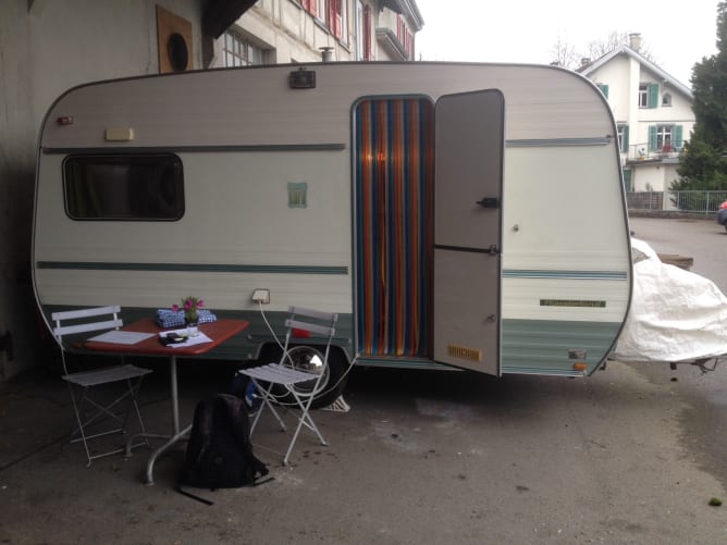 Hierfür brauchen wir als Bühnenbild dringend einen Wohnwagen… und wir haben einen sehr schönen und passenden gefunden! Er kostet Fr. 5000.-