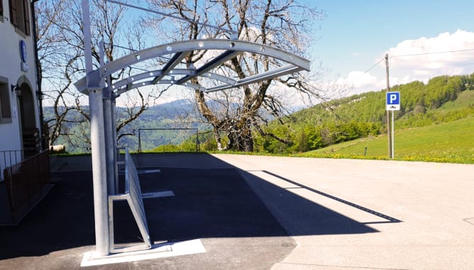 - Parc à vélos métallique de 10 unités avec toiture et prises de chargement