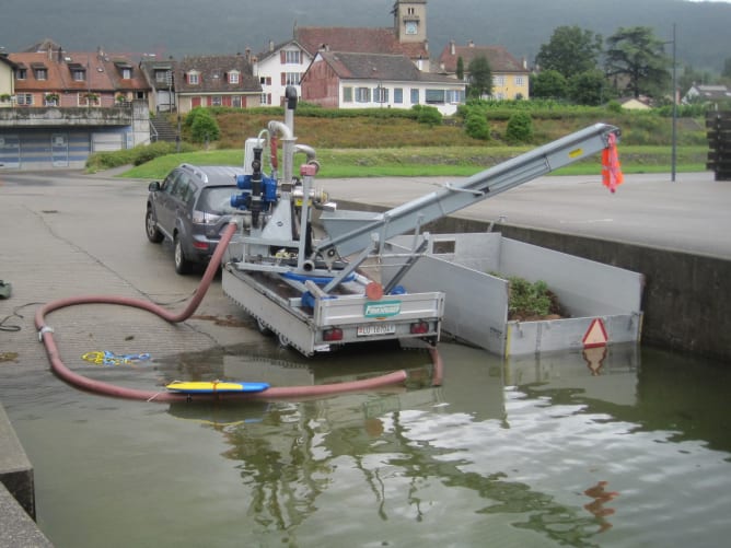 Le système fonctionne; le premier et petit prototype a fait ses preuves devant les responsables de 8 communes du lac de Neuchâtel présents lors des essais… mais à quai sur une remorque.