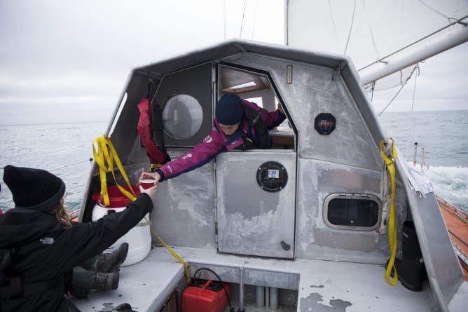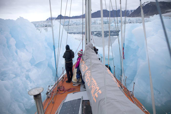 The artistic residency is organized by the association Maremotrice, whose intention is to confront different perceptions on polar environnement. Their boat serves as housing, workshop and transport use. It offers high possibilities of exploring areas difficult to reach. The idea is to travel with light logistic and cheap means . The artists involved in the project will afterwards work on the collected data in their own studios.
