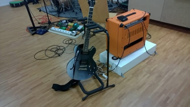Ausserdem gibt’s coole andenken unserer bisherigen Karriere so wie eine Waschechte, von uns gestaltete Gitarre.