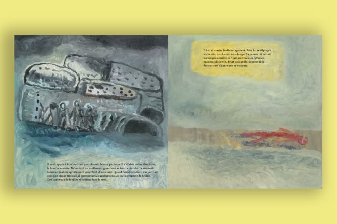 Le texte de Rodolphe Petit est mis en image dans un livret foisonnant par le peintre Alexandre Loye. Sur le disque microsillon, il est raconté par Francesco Biamonte, narrateur au timbre de voix sensible, et se trouve accompagné d’une création musicale forte et originale de l’ensemBle baBel, qui réunit Antonio Albanese (guitare), Laurent Estoppey (saxophones), Anne Gillot (flûtes à bec et clarinette basse), Luc Müller (batterie) et Noëlle Reymond (contrebasse).