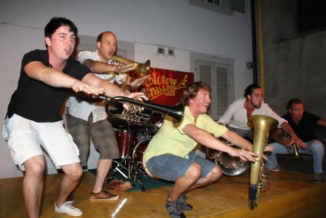 eine groovig-urchige Blechbläserkapelle mit Hang zu melancholischen Balkanklängen und schnellen Tempi. Kennengelernt haben wir uns während unserem Musikstudium, und seit 2007 sind wir unter dem Namen Molotow Brass Orkestar in ganz Europa unterwegs. Dabei konnten wir unter anderem am Lucerne Festival, am Brass: Durham International Festival, am Stadtspektakel Landshut, am Buskers Neuchâtel, am Buskers Lugano, im Bierhübeli Bern und im Moods Jazz Club auftreten.