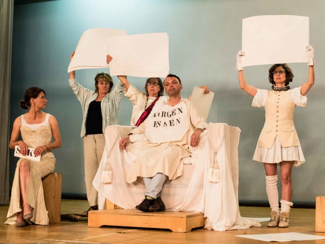 Die Schauspielerinnen und Schauspieler des Theatervereins «Zum Schwarze Gyger» proben intensiv für ihre kommende Aufführung. Am 28. August feiert unser neues Theaterstück «Romulus der Grosse» von Friedrich Dürrenmatt im Mühlestall in Allschwil, einer charmanten umgebauten Scheune, Premiere. Es folgen 12 Aufführungen. Derniere ist am Samstag, 18. September 2015.