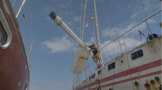 das rostige Segelboot, das zu einer strahlenden «Sailing Peperoni» werden soll.