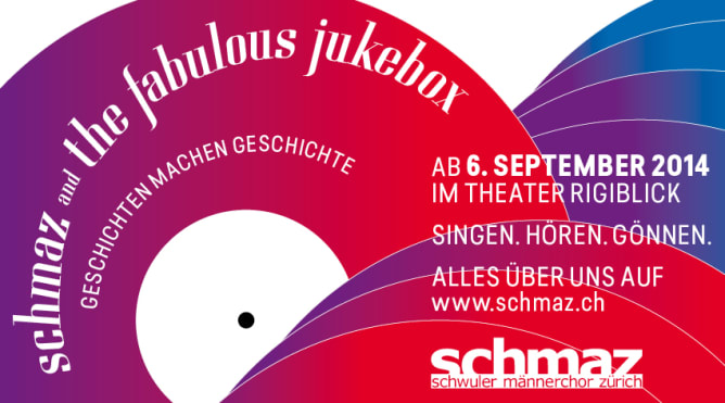 Das Programm: 1 Dirigent, 3 Musiker, 45 Sänger und mittendrin eine verstaubte Jukebox. «schmaz and the fabulous jukebox» ist ein Programm der schwulen Geschichte(n), Emotionen und breit gefächerten musikalischen Stilrichtungen. Von ABBA über Cole Porter, Elton John und Mika bis zu R.E.M. bietet der Abend alles, was eine «fabulous jukebox» so hergibt.