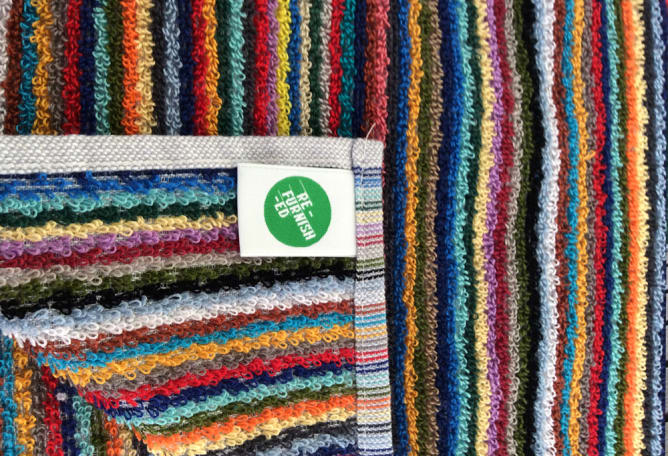 Die einmalige refurnished-Edition der frischen, buntgestreiften und praktischen Frotteetücher (mit neuem Farbverlauf) umfasst drei verschiedene Grössen: