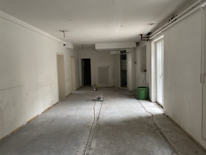 Das andere Geschoss im UG, das Hofgeschoss, ist noch nicht ganz fertig. Dieses beziehen wir erst am 1. April.