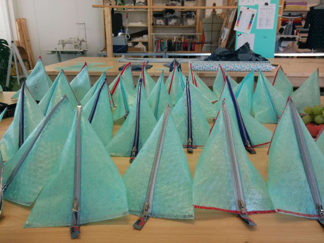 Cosmetic cases: upcycled bubble wrap cosmetic cases were already produced by our community during our ’bag party’ that took place earlier in September. These will be sent out by the end of October. Retro cosmetic cases will be produced and shipped by the middle of December.