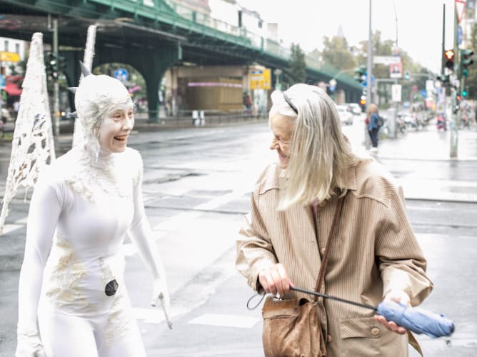 Somewhere, Maybe Here is a performance/film piece in development: a call for connection from a stranger, a fallen angel who arrives to the city, to Berlin. It’s about really being Here.