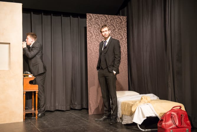 Membres de la troupe Théâtre Côté Court, nous sommes deux comédiens amateurs (Loïc Schrag et Loïck Müllauer) qui avons fait appel à une professionnelle (Fabienne Penseyres) pour nous mettre en scène dans une pièce de Harold Pinter : Le Monte-plats.