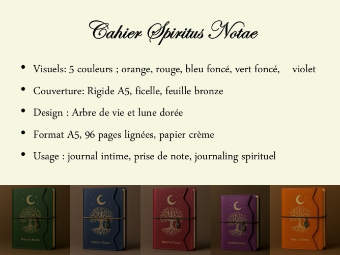 Ce projet est né d’un bouleversement personnel. Après avoir dû me reconvertir professionnellement à la suite d’une négligence médicale, j’ai choisi de transformer cette épreuve en force créative. En prenant du recul, j’ai imaginé Spiritus Notae : une papeterie porteuse de sens, d’ancrage et de lumière.