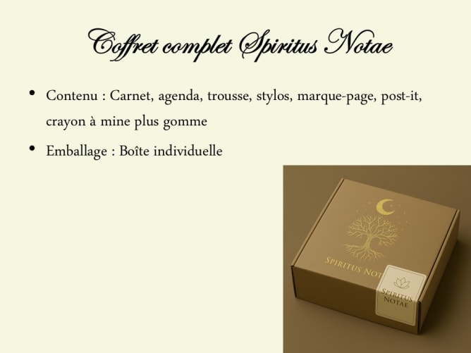 Votre soutien me permettra de financer la première production de 500 coffrets Spiritus Notae, composés de :