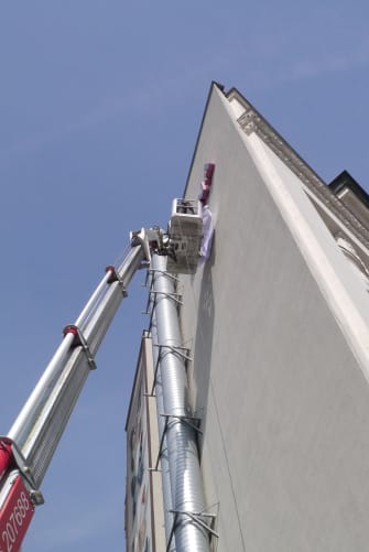 Wie geplant haben die Profis von Maierhofer und Montron heute mit der Montage starten können. Wenn man von unten zusieht, wie der Korb oben schwankt, wundert man sich, wie die da oben ein Schraube treffen können!