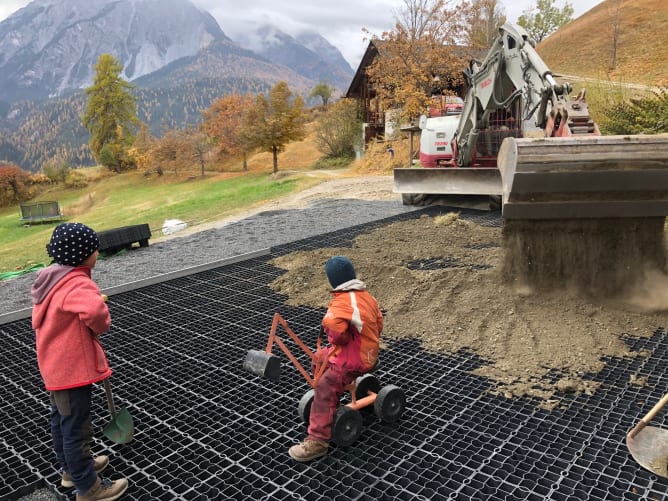 Wir haben es gerade noch geschafft, der Bau ist fertig! Es ist der Hammer und hat sich schon hundertmal bewährt, kein Pflotsch, kein Matsch, man steht einfach auf festem Boden =) ! Wir sind euch unendlich dankbar!