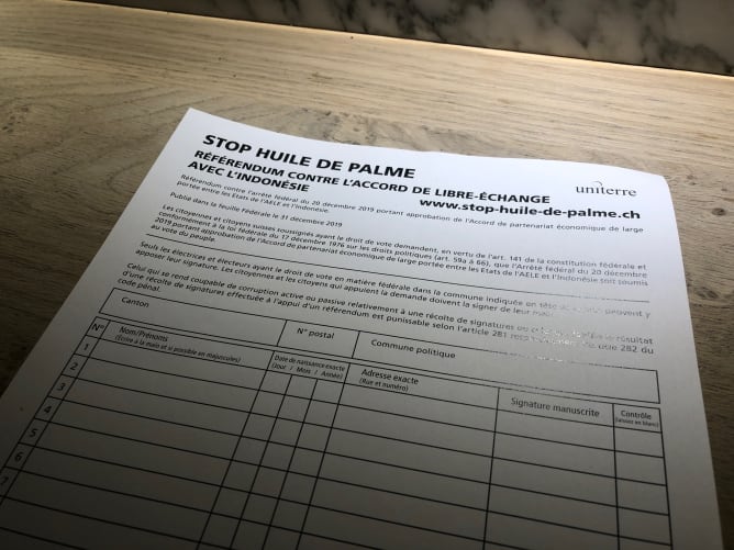 Le 20 décembre le Parlement a approuvé le traité de libre-échange avec l’Indonésie. Par les réductions douanières accordés le commerce d’huile de palme est favorisé. A l’heure des défis climatiques cette décision est irresponsable et en contradiction avec l’exigence d’un commerce durable ancré dans la Constitution.