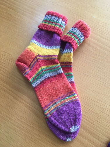 …um eine unserer attraktiven Belohnungen zu erstehen, z.B. ein Paar mit viel Liebe gestrickte Wollsocken…