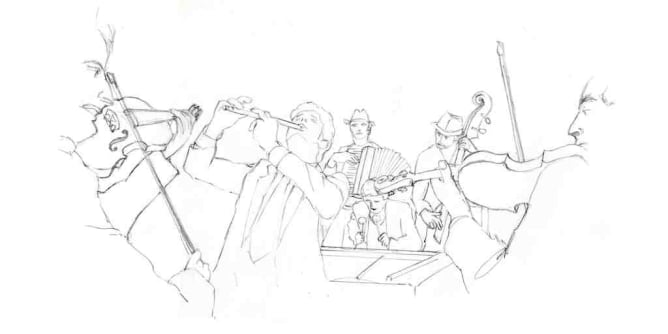 Um Ihnen das Warten auf die CD ein wenig zu versüßen, können sie hier schon einen Blick ins Atelier unseres «Artist in Residence» Louis Du Pasquier werfen, der uns jetzt schon einige (noch unfertige) Entwürfe und Skizzen zur Verfügung gestellt hat: