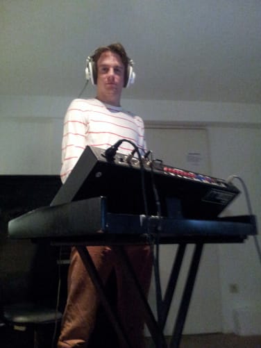 Samuel guitaring and helping out with the backing vocals and general vibe.