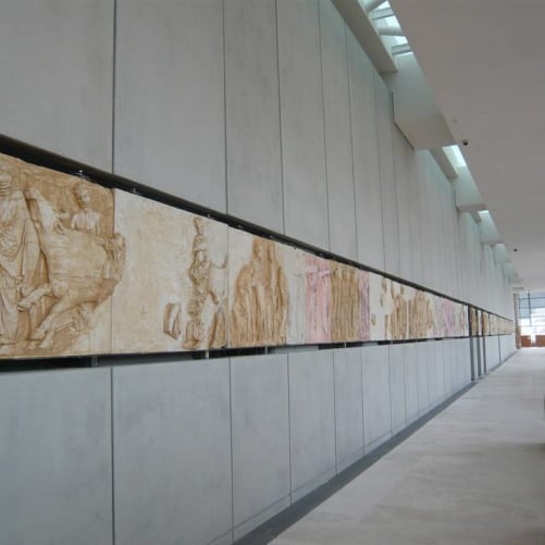 The reunification of the Parthenon Marbles would not constitute a precedent for other restitution claims since it is a unique case: like the shots of a film, the Marbles are a succession of images sculpted by Phidias which form an inseparable,artistic whole. It is therefore totally unacceptable that the frieze should be divided in two, with half of the original Marbles in Athens mournfully exhibited alongside the ghostly white plaster copies of their abducted parts.