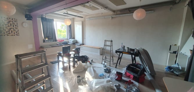 Nous attendons toujours la ventilation, car il y a eu du retard dans la livraison des tuyaux, et maintenant nous attendons un moment de congé pour pouvoir poser ses fameux tuyaux.