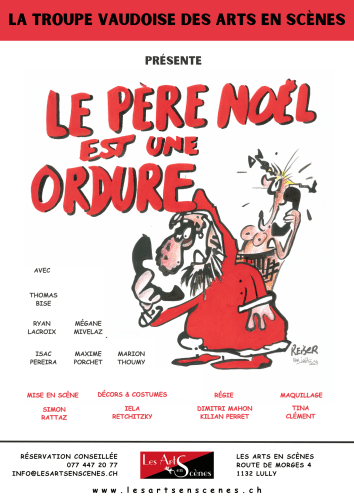 Cependant, la troupe des Arts en Scènes sera sur les scènes romandes tout prochainement avec son spectacle «Le Père Nöel est une ordure» et jouera les 29 et 30 novembre, ainsi que le 1er, 6 et 7 décembre 2024 à Les Arts en Scènes :-)