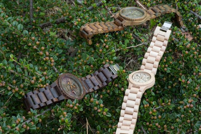 Le bois utilisé provient des chutes des entreprises travaillant ce matériau. Les différentes essences vont donc donner des couleurs naturelles à la trentaine de modèles de montres: verawood, teck, noyer, indian rosewood ou encore érable.