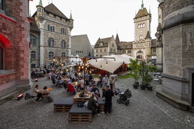 Hofkino is no ordinary open-air cinema – it’s an open summer garden in the courtyard of the Landesmuseum Zürich. We create a space that brings people together. Even without a cinema ticket, you can enjoy sustainable gastronomy and connect with others in a relaxed atmosphere.