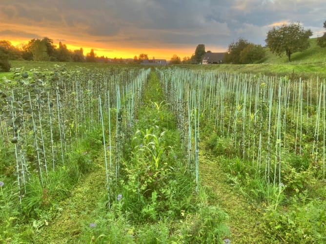 In 10 Tagen bei 50%, wir sind euch sooo dankbar! Hier ein Foto von unseren jungen Obstbäumen, die ebenso fleissig wachsen wie der Betrag hier 🌱🌳💚 Und die Gründüngung daneben ist voll mit Insekten, die sich mit uns freuen.