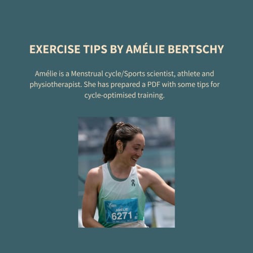 • Ever wondered how to best sync your cycle with your exercise routine? Amélie Bertschy is a Swiss Menstrual cycle/Sports scientist, athlete and physiotherapist. She has prepared a PDF with everything to consider for cycle-optimised training.