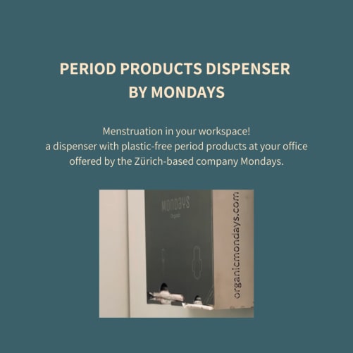 🩸 period products dispenser by Organic Mondays  💪 meno combos by The Women Circle AG 🤓 company lunch & learn by Marina Hagen personal branding session with Maja Juzwiak 👯 meet the founders - online or offline