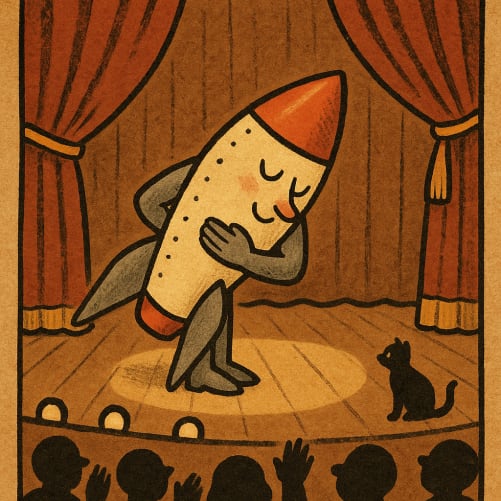 Ich bin Josef Lada. 1887 bei Prag geboren, Maler von Katzen, Kneipen, Bauern – und jetzt, vom Himmel aus, auch von Raketen. So eine Kampagne hab ich noch nie gemalt. Vielleicht sitze ich gerade hinter dem Andromedanebel und schaue euch zu, wie ihr fliegt, ihr Wahnsinnigen. Dass diese Rakete im Orbit ankommt, hätte ich nie gedacht…
