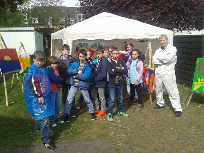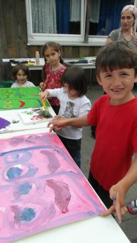 Das Projekt entstand, als wir 2014 ein Kunst- und Gestaltungsprojekt in einem Asylbewerberheim in Mönchengladbach realisierten. Mich faszinierten die Hingabe der Kinder für Kunst. Endlich konnten sie ihr emotionales Innenleben auf Leinwand ausdrücken. Sie wirkten beim Malen ausgelassener und konnten für einen Moment in ihre Fantasiewelt flüchten und vergessen, dass sie Flüchtlingskinder sind: Geboren ohne Heimat.