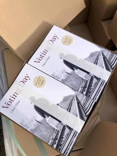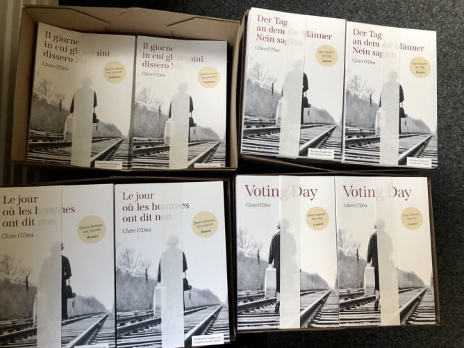 A month ago, we celebrated the end of a successful crowdfunding campaign. Thanks to your support, I had the financial means to print Voting Day in four languages. The books arrived from the printer today and will be sent out to you next week as part of your crowdfunding reward. It’s a wonderful feeling to hold the book in my hands and I am delighted to be able to share this experience with you.