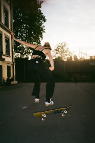We are designing an annual ski, snowboard, skate and surf magazine. We are appealing to the FLINTA community which naturally shows the versatility and variety of the ski, snowboard, skate- and surf scene. FLINTA* represents women, lesbians, inter, non-binary, trans and agender* and is the attempt to find an expression for a group of people who are not cis-male.