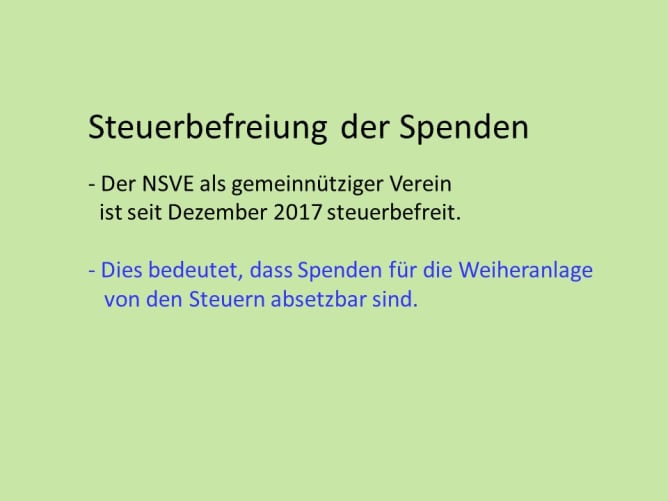 Nachdem die Gemeinde im Jahr 2017 die notwendigen Parzellen für CHF 77’000.- erwerben konnte, hat der NSVE ein Vorprojekt erstellt, ein Fachgutachten der KARCH (Koordinationsstelle für Amphibien- und Reptilienschutz in der Schweiz) eingeholt und eine professionelle Planungsofferte erstellen lassen. Die Gemeindeversammlung hat im Dezember 2017 den Planungskredit von CHF 10’000.- bewilligt. Um die Gemeinde neben dem Landkauf, der Planung und dem künftigen Unterhalt nicht noch stärker zu belasten, suchte der NSVE nach finanziellen Beiträgen an die vorgesehenen Baukosten von CHF 235’000.- Bislang wurden von Vereins- und Verbandsmitgliedern CHF 25’000.-, von Stiftungen und Fonds CHF 140’000.-, durch Spenden aus der Wirtschaft CHF 45’000.- aufgebracht. Es fehlen uns also für den Start CHF 25’000.- welche mit Hilfe der Crowdcommunity gesammelt werden sollen. Alle Spenden für das Projekt sind steuerlich absetzbar.