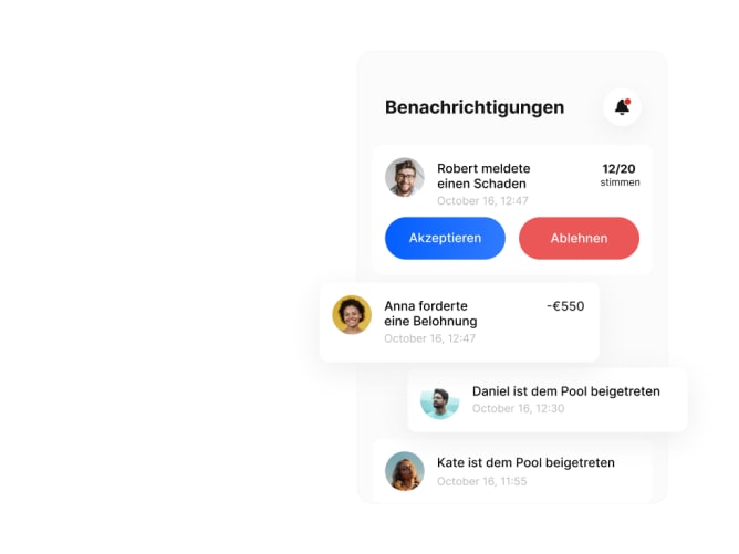 Alle Mitglieder wissen, wer in der Gruppe ist, wer einen Schaden anmeldet und wie viel Geld im Pool ist. Du kannst auch einen eigenen Versicherungspool wählen - seien es Freunde, Familienmitglieder oder Menschen, mit denen Du Interessen und Aktivitäten teilst.