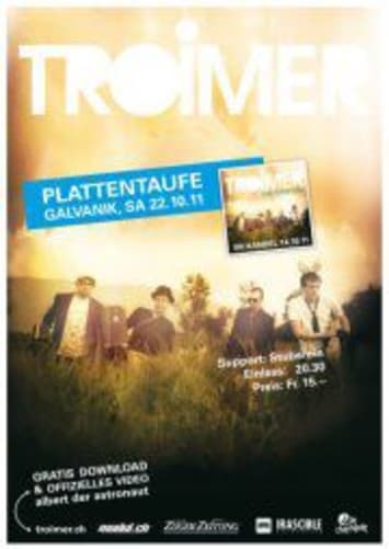 «Troimer» ist eine Rockband, welche 2011 das Album «hier! jetzt! da!» veröffentlichte (Airplay u.a. mit «Albert der Astronaut»).
