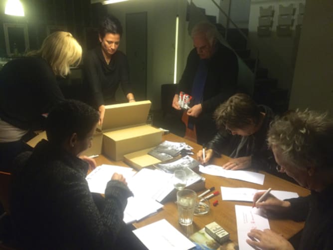 In einer äusserst disziplinierten und wohlorganisierten AKTION wurden heute Abend von vielen Händen die BELOHNUNGEN unterschrieben (Rams und René), komplettiert (Krisztina und Michael), adressiert (Sibylle), frankiert (Rahel) und zugeklebt (Stefanie).